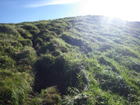 | 沓掛山と歩いて来た登山道 7時44分 振り返ると沓掛山の稜線が全て見渡せる じっと見ていると沓掛山の稜線が円形になって噴火口のように見えるが・・・ |