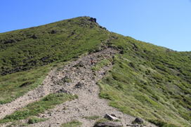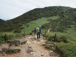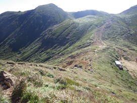 扇ヶ鼻への登山道 13時12分 ペースが落ちているのか?足の速いご夫婦に抜かれてしまった。振り返ると星生山。 星生山 |