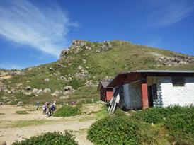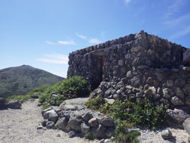 ![]() 避難小屋は石を積んで頑丈に作られている。 |