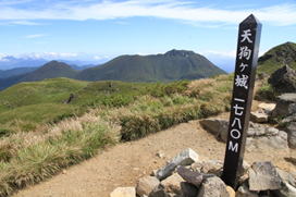 久住山頂からの景色 左/天狗ヶ城・右/中岳 ・ 左奥遠方/由布岳 ・ 右奥/大船山
