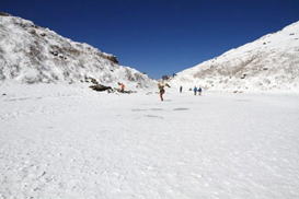 氷結した御池の真ん中で 11時05分 |