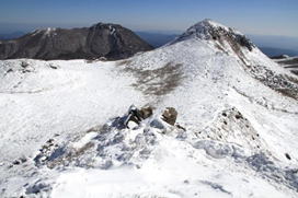 ![]() 慰霊碑から天狗ヶ城(左)と中岳(右)を望む |