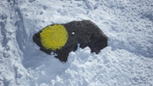 星生崎から下を覗き込むと・・・ 10時25分 避難小屋周辺に人影が動く