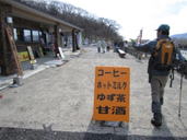 19、牧ノ戸登山口にゴール 14時42分 思わずバンザイ! |