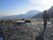 避難小屋前の広場を通過 13時07分 ガレ場を越えて西千里浜へ。