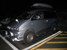 牧ノ戸登山口到着 1時13分 夜10時30分頃、家内の運転で自宅を出発。 牧ノ戸に到着したら、夜中の1時を過ぎていた。駐車場には先着の車がたったの2台。 外に出てみると、満点の星が空から降り注ぐように瞬いていた。 |
