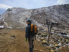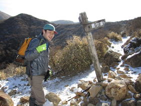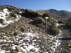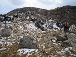 8、久住分れ 10時07分 風がとても強く、手もかじかんで体が冷えてきた。 |