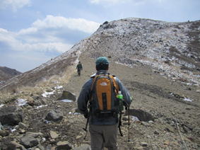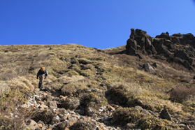 ここからが勝負! 急登を上り、右上の星生山山頂を目指す。