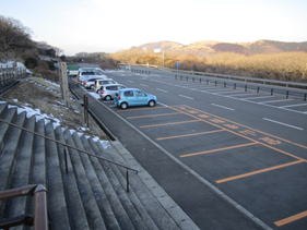 出発準備 7時04分 6時30分頃起床。気温マイナス5℃。 車の窓ガラスの結露はガチガチに凍っていた。 駐車場の車は10台程度であまり増えていない。 しかし、この後、この駐車場が満車になろうとは(家内談)・・・とても想像できなかった。 |