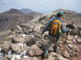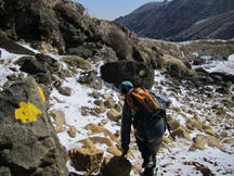 あと一息 9時05分 途中の大きな岩の近くまでやってきた。