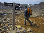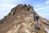 天狗ヶ城を出発 11時30分 これより、天狗ヶ城に別れを告げて、写真左上の久住山へ向かう。 20代半ばくらいだろうか? |