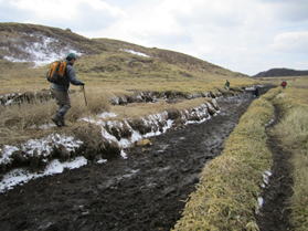 16、西千里浜を歩く 13時22分 登山道は黒土ドロドロのぬかるみ状態。