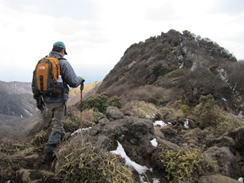 中岳を出発 11時08分 中岳の双耳峰となる天狗ヶ城を目指す。 |
