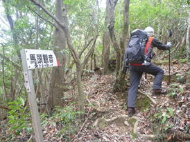 馬頭観音方面へ 12時51分 先ほどの陶峠の標識から左に曲がって10mも歩くと 「馬頭観音」への標識が現れた。 その標識の下部に「キツネ峰」と書いてあった。 登り返しとなる |