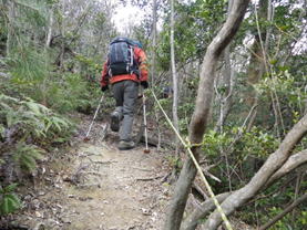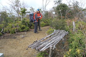 昼食も終え再スタート 12時34分 魚切山で約1時間の休憩だった。 栄養補給もバッチリ!手作りベンチに別れを告げる。 絶好調 |