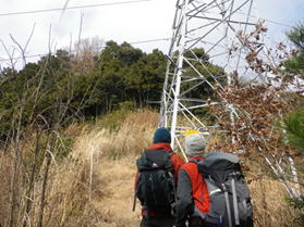 鉄塔標識の下を左に進む 15時09分 ここからどこへ進むのか?ちょっと悩んだが標識の下の道を左へ進んだ。 中電鉄塔標識 |