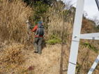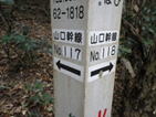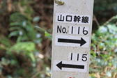 鉄塔案内標識に注意 14時40分 道沿いには鉄塔案内標識が設置されている。 我々は最初この標識の横をまっすぐ進んだのだが行き止まり。どうやらケモノ道らしかった。 標識を右に曲がる |