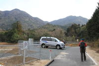 1、7時30分 中国自動車道小郡インターを降りてすぐに目に飛び込んできた山群が今日の目的地。標高はさほど高くない。 高速道路の高架をくぐって山に近づいて行くと「この先車両通行不可」との黄色い看板が目に付いた。 更に500m位進むと明神溜池となり行き止まりである。この溜池横の小さなスペースに車を停めた。 |