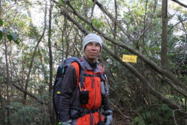2、吉野堤登山口 8時21分 明神溜池から34分かかり黒河内山への登山口に到着。地元の方が草刈りをしていた。 登山口表示 |