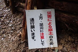 災害による崩土の注意看板 |