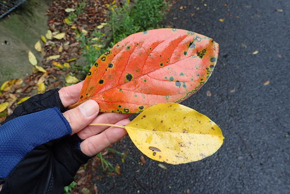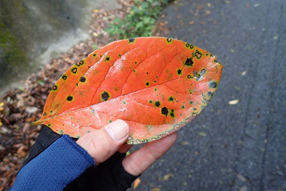 オレンジ色に染まる落ち葉 10時36分 綺麗だ! |