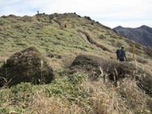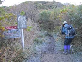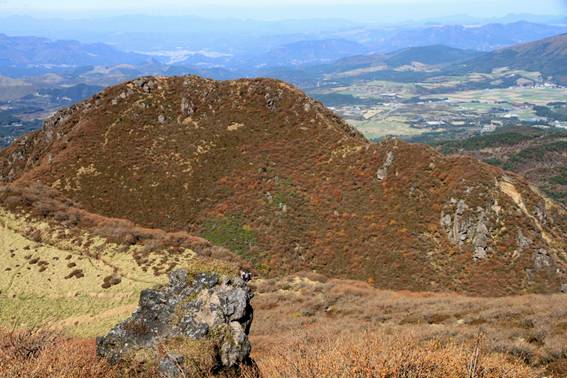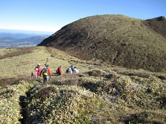 更に登って振り返ると、左手の奥(久住分れの所)に阿蘇の根子岳がうっすらと見える。9時23分