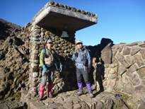 2、すがもり越に到着 8時15分 登山者が何人もこの「愛の鐘」を鳴らしていた。 愛の鐘 |
