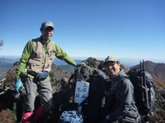 右手の奥に先ほど歩いた北峰が見える。左手は本峰山頂。 11時57分