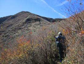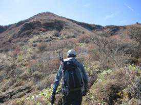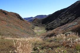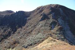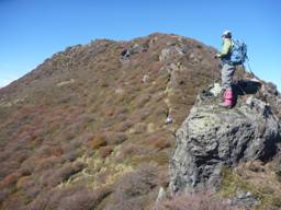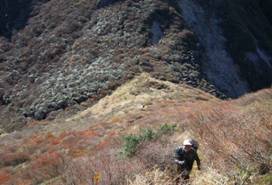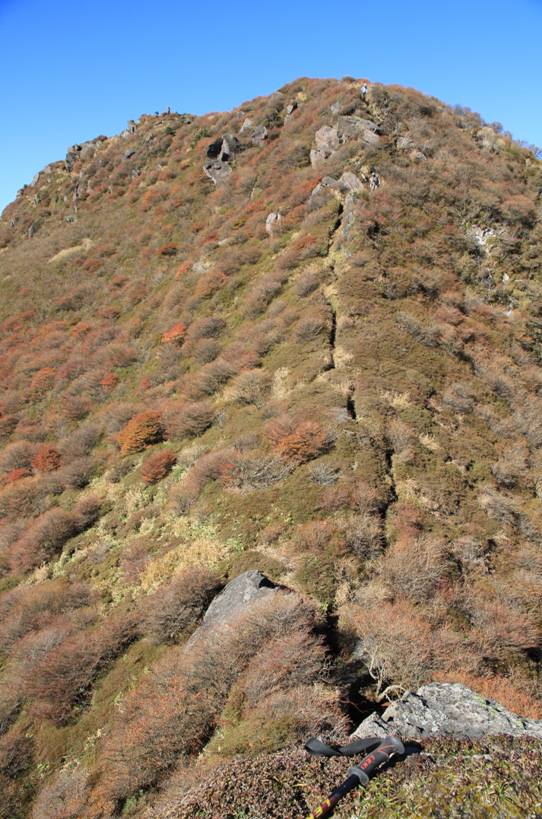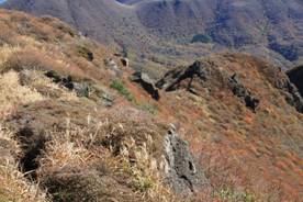 三俣山の北峰 (大鍋・小鍋の紅葉は終わりを告げていた) この尾根を歩いた。