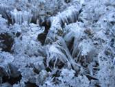 鉱山道路を目指して歩く 7時30分 足元は真っ白。よく見ると3センチ以上の霜柱がビッシリと。ザクザクと霜柱を踏んで歩く。