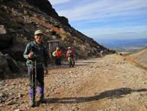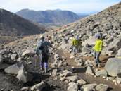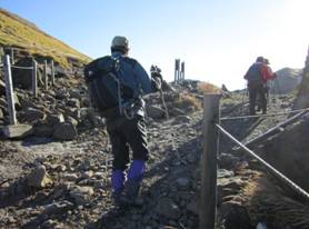 南峰を目指す 11時25分 北峰と南峰の鞍部を進む。左上に南峰が見える。これからまた長〜い急勾配を・・・。