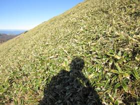 斜面のクマザサが眩しい 8時32分 お天気よく、気持ちよく、ルンルンと歩く。