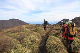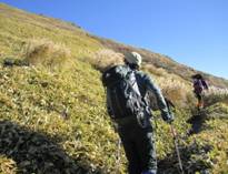 なだらかな道を選んで歩く 13時00分 ちょっと近道。T師匠のリードでW峰へ。
