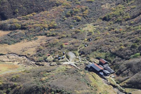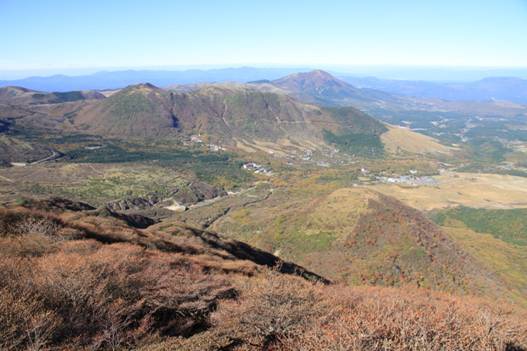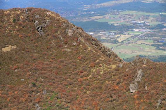 本峰から大鍋を見下ろすと、紅葉は既に終わりかけていた。それにしても遠くまでよく見える。