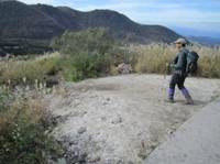 北峰を見上げる 10時11分 上を見ると、先行の登山者が歩いていた。