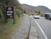 1、大曲り 7時09分 7時過ぎに大曲りに到着。気温は−2℃。 結構冷え込んでいる。既に大曲りの駐車スペースは満車で、路肩に車があふれていた。私たちも大曲りの登山口から200メートル位下の路肩に並べて駐車した。さっそく登山準備に取り掛かるが、手がかじかんで思うようにいかない。今日は良いお天気に恵まれそうだ。逸(はや)る心を抑えつつ、ザックを点検。 |