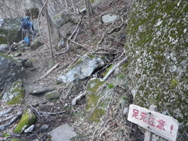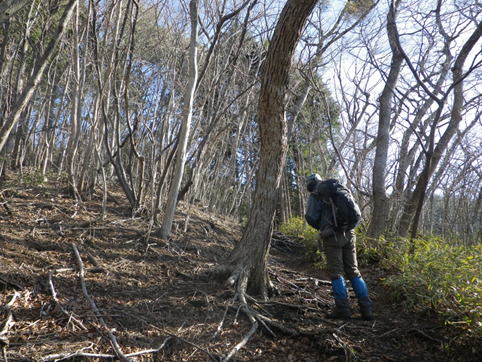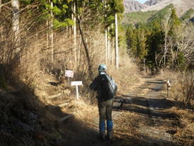 木段を下って佐渡窪へ 14時06分 |