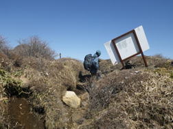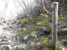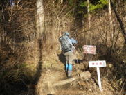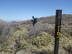 ![]() 看板の左が稲星越、右に進むと鳴子山 |