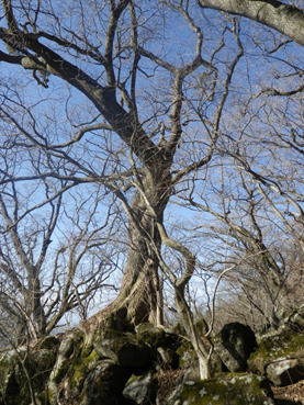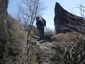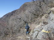 根っこで岩を包む大木 8時29分 森の主か? 今にでも動きそうな白くて大きな木だった。ん?木が何やら話しかけてくる・・・。 「自然を大切に!」と聞こえたような・・・。 ![]() 森を抜け涸れ沢に出たが、右に渡って大きな岩が続く急坂を上って行く。一つ一つ岩をクリアしていくのが楽しい上りだった。 8時44分 |