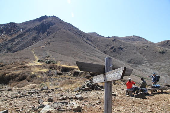 鉾立峠 ここでちょっと休憩、白口岳を見上げる 13時57分
