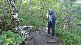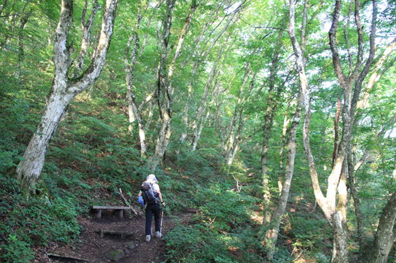 | 時々休憩をとりながらやっとブナ林まで上って来た。 |