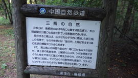 | 男三瓶山北斜面の上部には、ブナ林が残っており、島根県内では数少ない大変貴重な地域となっています。(説明看板より) |