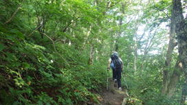 他の登山者に踏みつけられてもいけないので、クワガタをレスキューして近くの木にとまらせた。自然豊富な森には昆虫もたくさん生息しているのだろう。 |