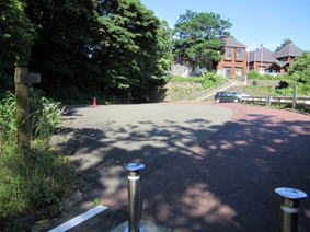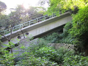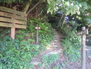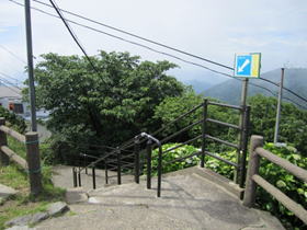 山頂から雨情道路へ 10時06分 この坂を下ると帆柱ケーブルカー山上駅へと続く。 |