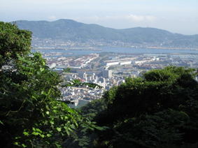 樹木の間から市街地が見える 8時25分 ふれあいの家から本格的な登山道となる。 |