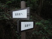 2、 この分岐から左(国見岩)に進む 8時34分 やっとのことで「見返り坂」が終わると、煌彩の森・国見岩横断コースの分岐がある。 |
