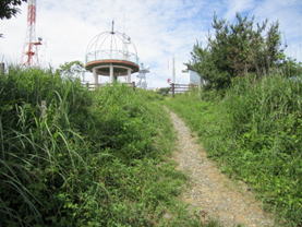 展望台が見えてきた 9時58分 山頂に自然はない。階段を歩いて行く。 |
