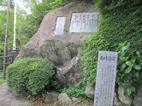 野口雨情の詩碑 10時09分 野口雨情は、七つの子、赤い靴、青い眼の人形、しゃぼん玉、雨降りお月など童謡作品で有名な詩人である。 |