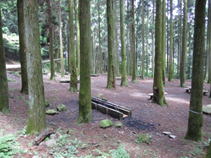 8、権現の辻 11時06分 この権現の辻から少し下り、帆柱山を目指して歩いていたが、急に霧が濃くなり森が暗くなってきた。 |