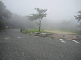 9、皿倉平 11時25分 皿倉平に戻ると霧がかかり真っ白な風景に。 |